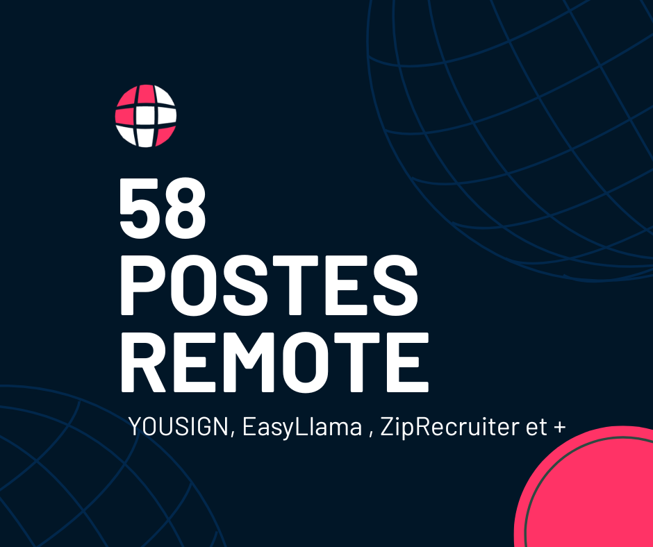 58 postes ouverts en full remote cette semaine (ZipRecruiter, EasyLlama, YOUSIGN et +)