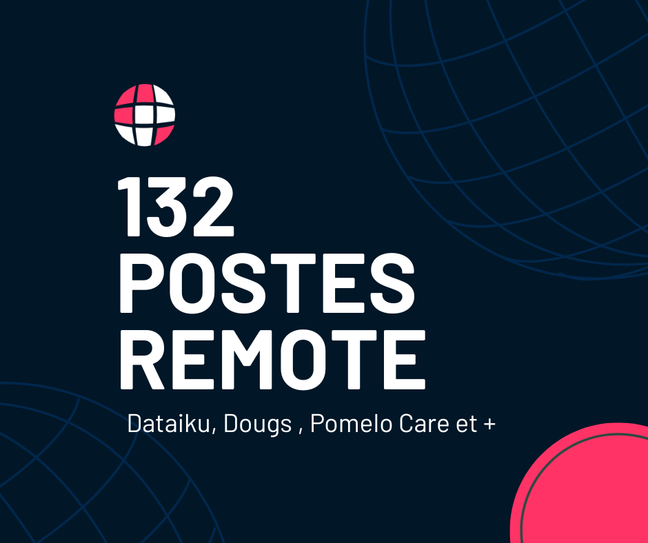 132 postes ouverts en full remote cette semaine (Dataiku, Dougs, Pomelo Care et +)